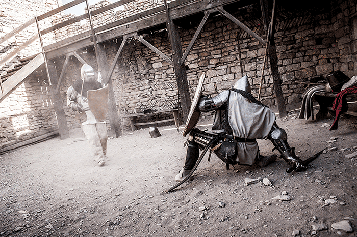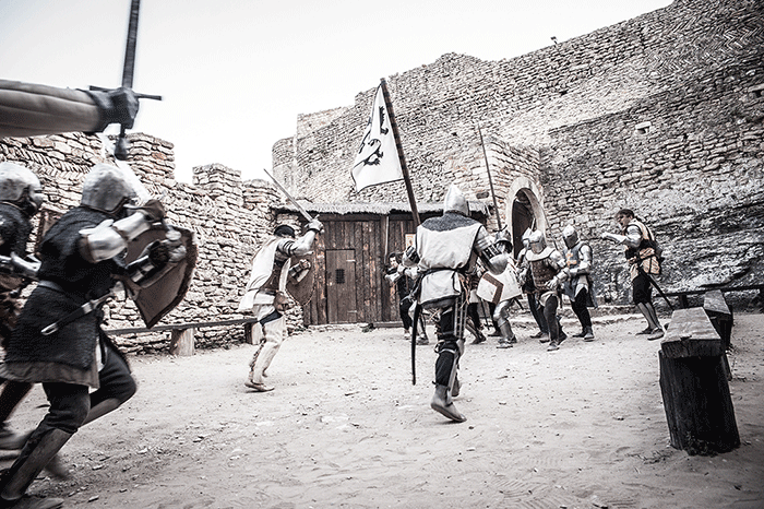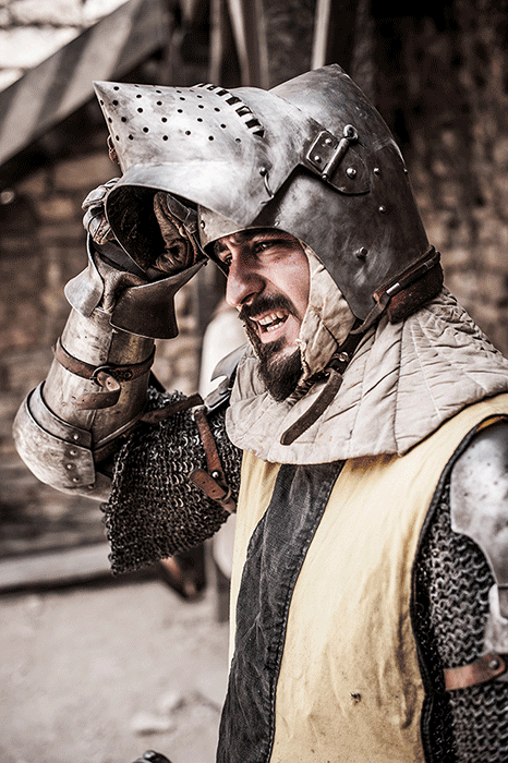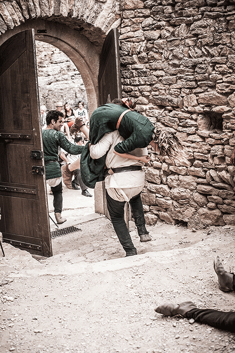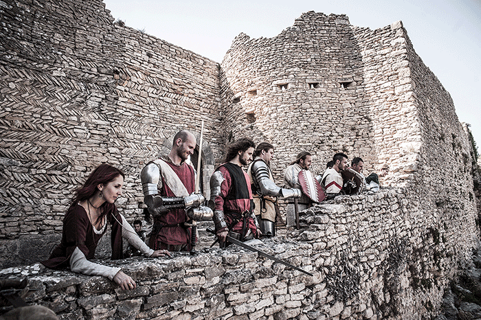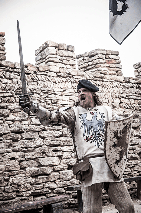 L'Oriflamme et les Lions de Guerre se sont pris au jeu de la séance photo dans l'une des pièces de la forteresse. A la manière d'un tableau d'époque on découvre des personnages hauts en couleur revêtus de magnifiques costumes au plus proche de l'Histoire.
