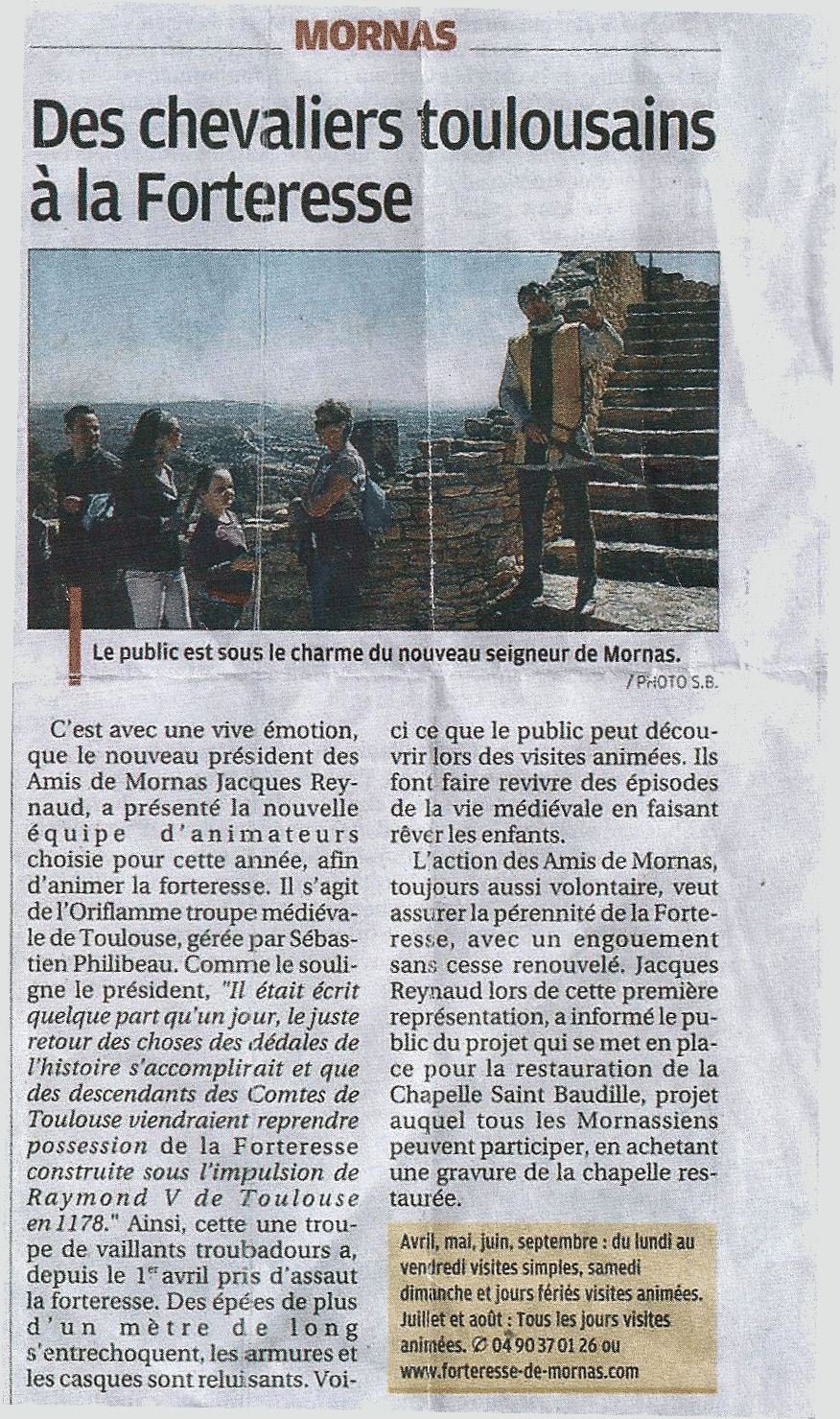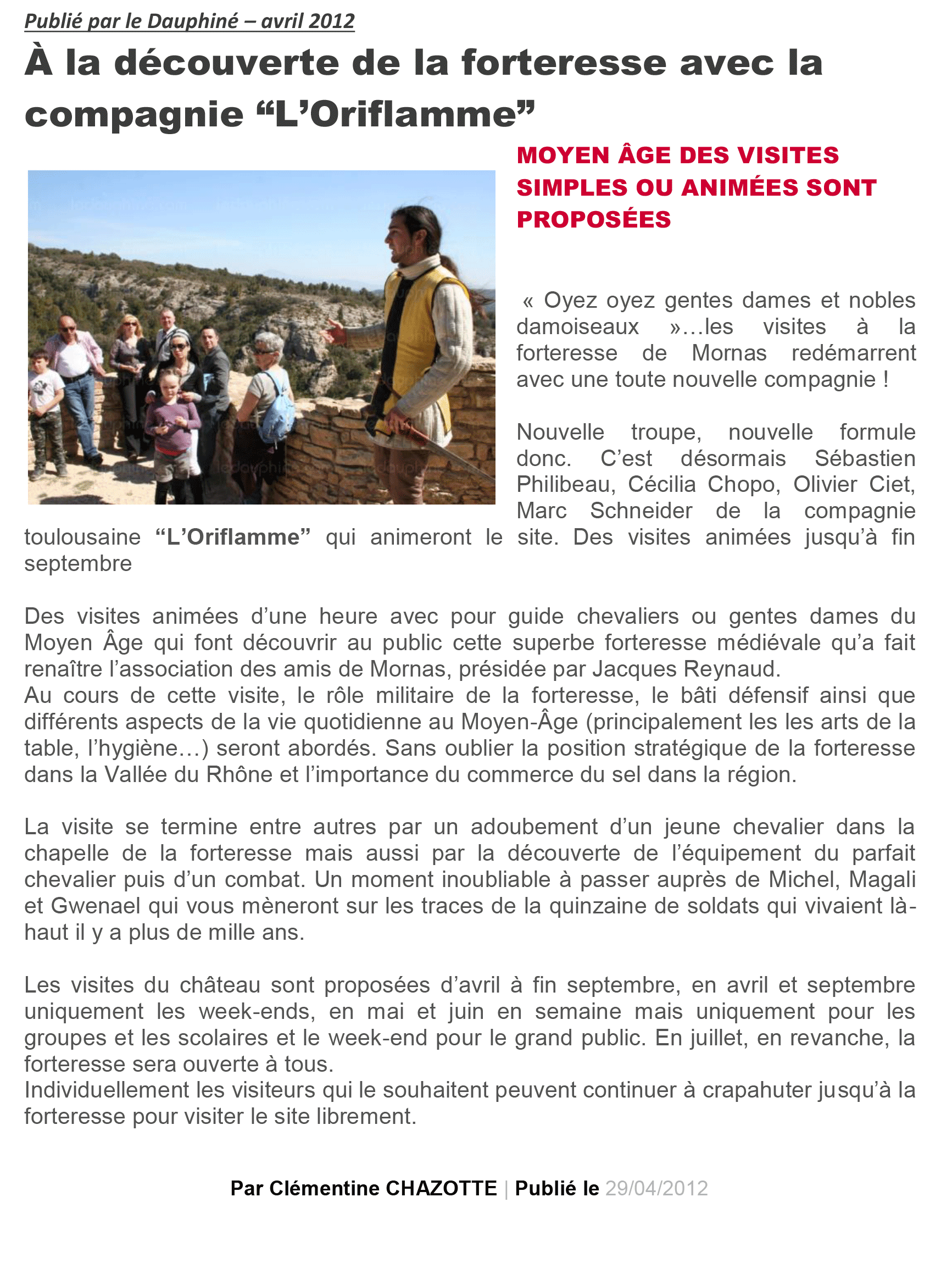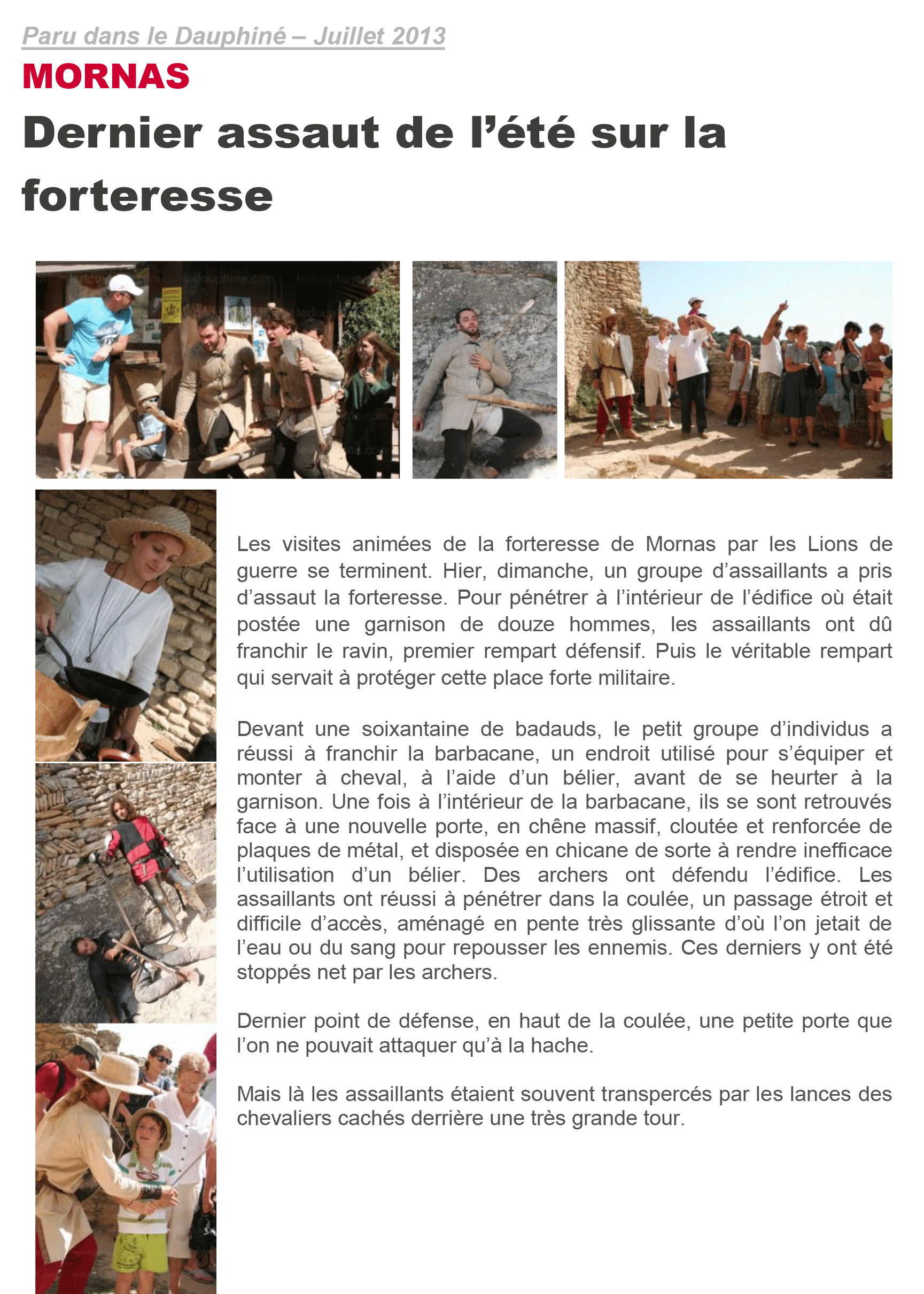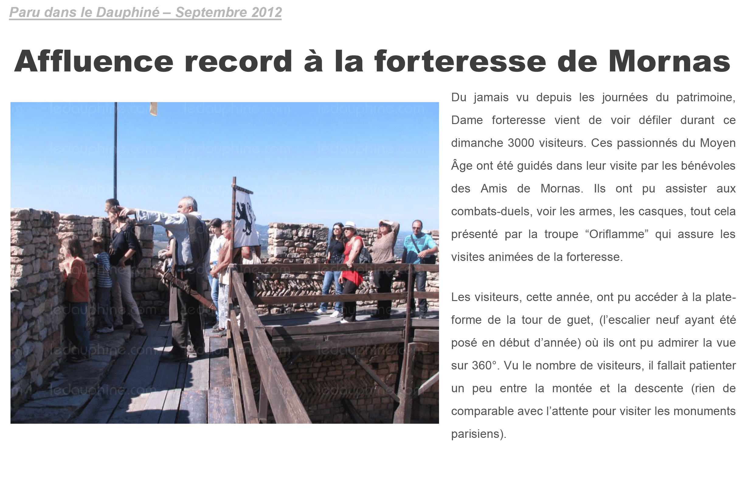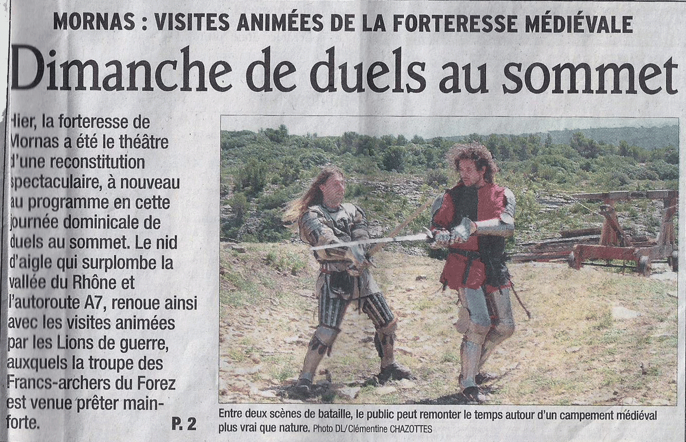 Le Dauphiné Des chevaliers toulousains à la Forteresse "Les Amis de Mornas ont présentés la nouvelle animation de la Forteresse"