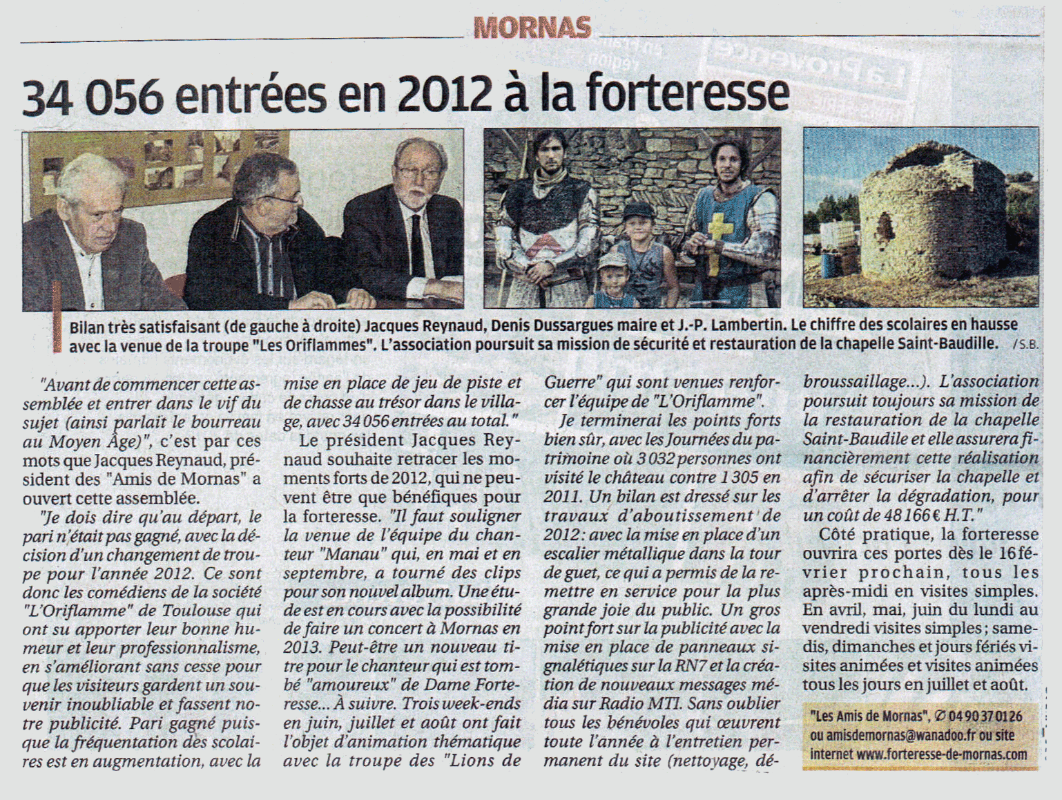 La Provence 34 056 entrées en 2012 à la Forteresse "Ce sont donc les comédiens de la SARL L'Oriflamme qui ont su apporter leur bonne humeur et leur professionnalisme"